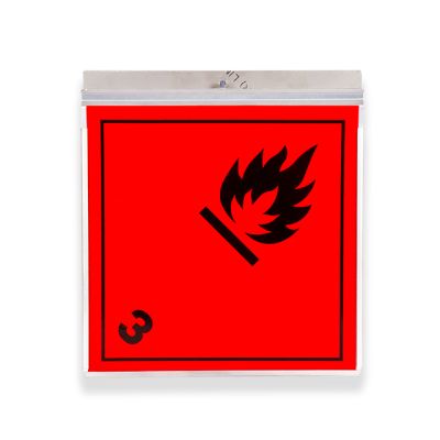 Soporte para etiquetas adhesivas de ADR de 30x30 cm, cuyas siglas significan, Acuerdo Europeo sobre Transporte Internacional de Mercancías Peligrosas por Carretera.